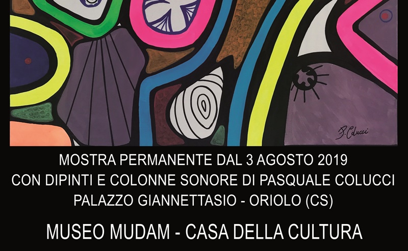 Ad Oriolo in provincia di Cosenza presso il Museo MUDAM – Casa della Cultura del Palazzo Giannettasio, dal 3 agosto si potranno ammirare le nuove opere di Pasquale Colucci, artista e compositore che ha portato negli ultimi anni i suoi dipinti e la sua musica in giro per il mondo: Londra, New York, Miami, Montecarlo, Edimburgo ed altre, molte le sue mostre personali in tante città italiane: Ferrara, Bologna, Venezia, Firenze, Reggio Emilia e altre. Nel 2018 a Cosenza la sua prima mostra antologica organizzata dal MiBACT Ministero per i beni e le attività culturali.