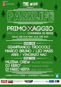 Il 1 Maggio torna, per la sesta edizione consecutiva, l’evento primaverile più atteso della città di Rende: Parklife. Un format semplice ma vincente: un grande parco, buona musica e sano divertimento. L’iniziativa è oramai divenuta un appuntamento fisso in città e nelle passate edizioni ha riscosso un grande successo di pubblico, registrando più di 25.000 presenze di partecipanti provenienti da tutta la regione.