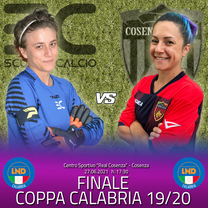 Si giocherà domenica 27 giugno alle ore 17:30 presso il Centro Sportivo Real Cosenza la finale di Coppa Calabria Femminile. Non disputata lo scorso anno per lo stop all’attività sportiva dovuto alla pandemia.