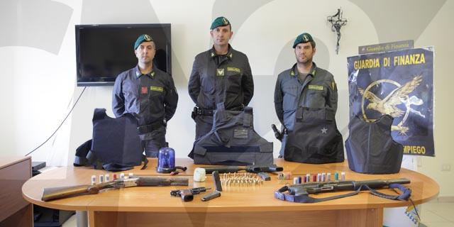 Il tutto era nascosto in un sacco di plastica con dentro un borsone, al cui interno i militari hanno trovato una pistola calibro 9, due fucili, di cui uno a pompa ed uno a canne mozze, entrambi calibro 12, una mitraglietta calibro 9 con silenziatore ed il relativo munizionamento. Il borsone rinvenuto conteneva, inoltre, due giubbotti antiproiettile, alcuni fumogeni, uno spray al peperoncino ed un lampeggiante di colore blu, senza numero identificativo.