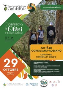 L’appuntamento a Corigliano-Rossano, per la settimana giornata nazionale della Camminata tra gli Olivi è per domenica 29 ottobre in contrada Ciminata Greco, appuntamento alle 9.45 con partenza alle 10. Evento promosso e sostenuto dal Comune di Corigliano-Rossano.