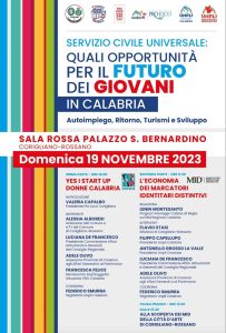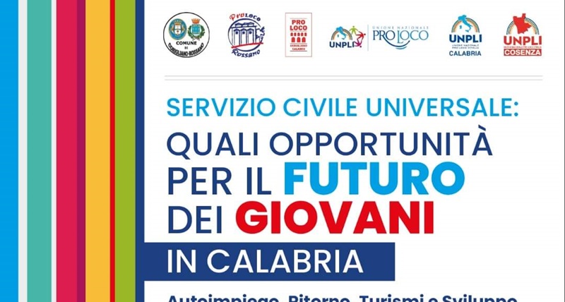 All’evento di approfondimento, che sarà ospitato domenica 19, dalle ore 10 nella Sala Rossa di Palazzo San Bernardino, nel Centro Storico di Rossano parteciperanno le giovani ed i giovani di tutta la provincia partecipanti al Servizio, accompagnati dai presidenti e dagli operatori delle Pro Loco di Belmonte Calabro, Carolei, Cerchiara di Calabria, Corigliano-Rossano, Longobardi, Marzi, Piane, Roggiano Gravina, San Lucido, San Vincenzo La Costa, Sant’Agata d’Esaro, Sangineto, Scalea, Verbicaro. – Patrocinato dal Comune di Corigliano – Rossano e promosso dall’UNPLI – Unione Proloco Italiane, l’evento di informazione e formazione, attraverso due sessioni coordinate entrambe da Federico Smurra, Segretario dell’Unpli Calabria e formatore dell’Unpli nazionale, approfondirà in particolare due progetti interconnessi al Servizio Civile Generale: Yes I Start Up Donne Calabria e i Marcatori Identitari Distintivi (MID) della Calabria Straordinaria.