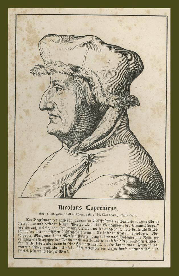 La prima immagine riporta un ritratto raro di Copernico mentre la seconda si rifà alle Sfere Di Niccolò Copernico, Sfera Di Ptolemée, Desnos, Verso 1780.