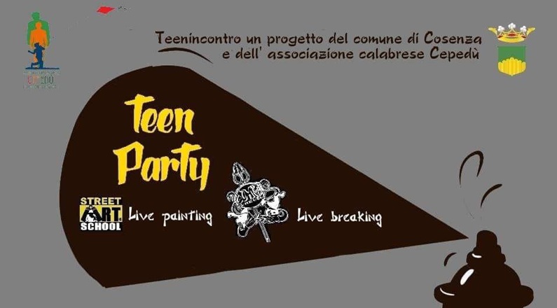 Martedì 4 Dicembre, dalle ore 18 alle ore 20, in Piazza Bilotti, ci sarà l’appuntamento di Street Art, “ Teen Party” , con esibizioni di cultura Hip Hop e incontri con i ragazzi.