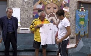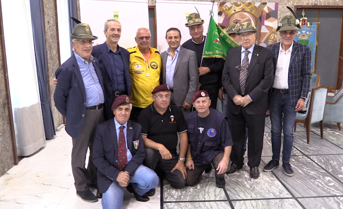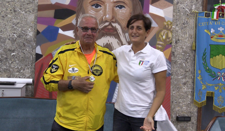 Ad accoglierlo nel salone di rappresentanza del Comune, gli assessori Carmine Vizza (Sport) e Francesco Caruso (Riqualificazione urbana) oltre a Francesca Stancati presidente provinciale del Coni e ai rappresentanti delle associazioni nazionali Alpini italiani e Paracadutisti italiani.