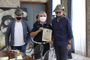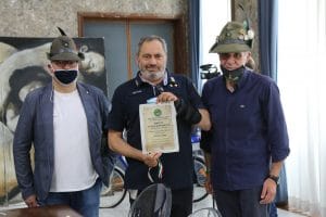 Nel corso di una breve cerimonia, tenutasi nel salone di rappresentanza di Palazzo dei Bruzi, il consigliere della sezione ANA di Napoli Campania-Calabria, Gianfranco Musacchio ha consegnato al Sindaco Mario Occhiuto, per conto del Vice capogruppo di Torri-Lerino, sezione di Vicenza, Giuseppe Alessi, il gagliardetto dello stesso gruppo. Questo a testimonianza dell’accoglienza tributata dalla città di Cosenza ai gruppi Alpini di Settecà e Bressanvido che parteciparono al raduno di un anno fa con il consigliere di sezione Giancarlo Lorenzetti e il vice coordinatore di sezione della Protezione civile, Natalino Guazzo.