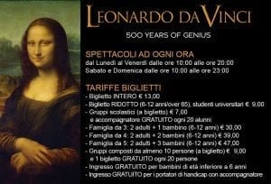 Per tutte le info sui biglietti e sui pacchetti di ingresso si può consultare il sito www.davincicosenza.it.