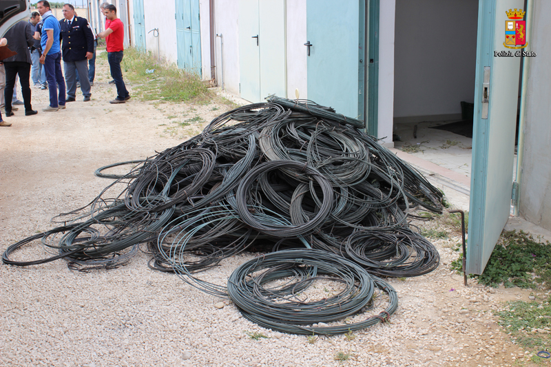 Sono circa 1800 metri di cavo in alluminio e 150 metri di cavo di rame usato per le linee aeree di bassa tensione dell ‘Enel rinvenuti nel deposito sequestrato.Il riconoscimento del materiale rubato è stato effettuato da alcuni specialisti del comparto Security dell’azienda energetica.