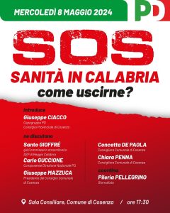 “SOS Sanità in Calabria. Come uscirne?”: è questo il titolo dell’incontro che si terrà domani, mercoledì 8 maggio, alle ore 17.30, nella sala consiliare del Comune di Cosenza