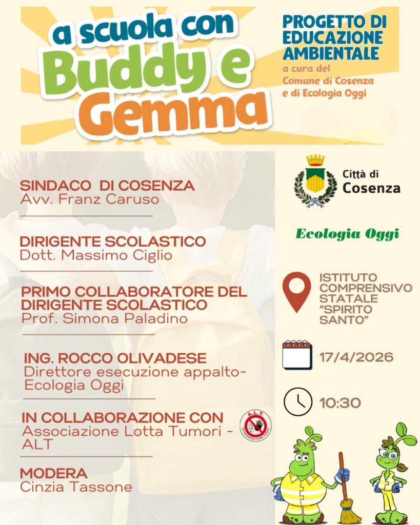 Sarà l’Istituto comprensivo statale “Spirito Santo” di Cosenza ad ospitare, venerdì 17 aprile, una nuova tappa del progetto di educazione ambientale inserito nella campagna di sensibilizzazione promossa dal Comune e da Ecologia Oggi per indirizzare i giovanissimi e i cittadini a comportamenti più virtuosi nell’effettuare la raccolta differenziata. L’iniziativa, in programma alle ore 10,30 nella sede dell’Istituto comprensivo “Spirito Santo” vedrà, come già accaduto a fine novembre dello scorso anno all’Istituto comprensivo “Fausto Gullo”, la partecipazione del Sindaco Franz Caruso.