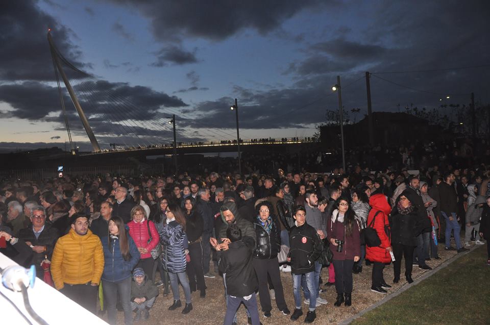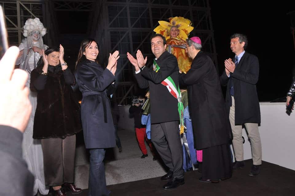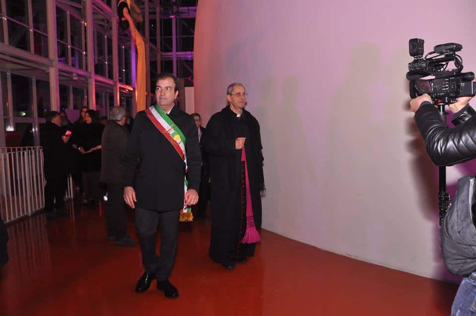 E’ il momento che dà l’abbrivio alla visita interna con altri danzatori aerei, in una mescolanza di teatro e musica che allunga ancora la magia di qualche ora, con una processione di visitatori che continua ancora fino a poco prima della mezzanotte, grazie ad una organizzazione che ha saputo gestire ordinatamente i flussi verso la struttura garantendo le migliori condizioni di sicurezza. A questo proposito il Sindaco Occhiuto ha voluto ringraziare tutte le forze dell’ordine, la Polizia Municipale (con una menzione particolare per l’Ispettore Giacomo Fuoco), l’Associazione Nazionale Carabinieri e, infine, anche l’ENS (Ente Nazionale Sordi) che, attraverso un’interprete, ha consentito ai non udenti di seguire tutta la cerimonia di inaugurazione.
