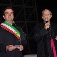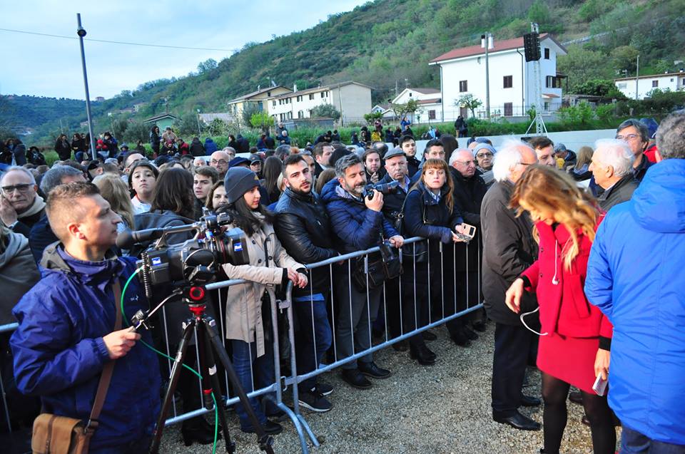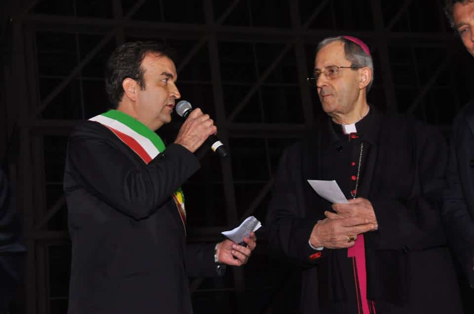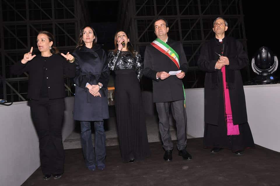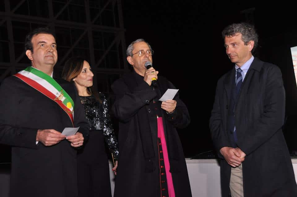 Subito dopo il Sindaco, la benedizione dell’Arcivescovo di Cosenza, Mons.Francescantonio Nolè, preceduta da alcune parole di particolare profondità: “il Signore è contento quando l’uomo mette a frutto i doni che ha ricevuto da lui. Le opere che sono qui intorno sono doni che il Signore ha dato a ciascuno di noi. Metterle a frutto è un dovere. Questo progresso scientifico ci fa entrare nel mistero dell’Universo. Che per noi cristiani e credenti è un’opera creativa di Dio talmente perfetta che nessuno mai potrà entrare in questa perfezione se non contemplarla, ringraziandolo”. E completa la sua benedizione scegliendo opportunamente il Cantico delle Creature di San Francesco d’Assisi, primo componimento italiano di allora, del 1224, e scritto da Francesco d’Assisi in una notte stellata, quando era in crisi perché i frati non seguivano quello che lui aveva detto e voleva fare, in modo particolare la povertà. E allora si rivolse al Signore indirizzando il suo sguardo al cielo e alle stelle.