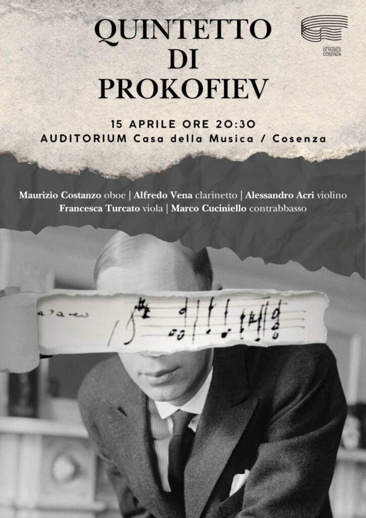 È dedicato al Quintetto di Sergei Prokofiev (1891-1953) il prossimo concerto, il 15 aprile alle 20,30 nell’Aula Magna del Conservatorio, Portapiana, che proprio dal brano op. 39 prende il titolo. Il concerto propone un programma che si svolge con circolarità, iniziando dalle musiche per balletto “Trapèze” e concludendosi con il Quintetto op. 39.