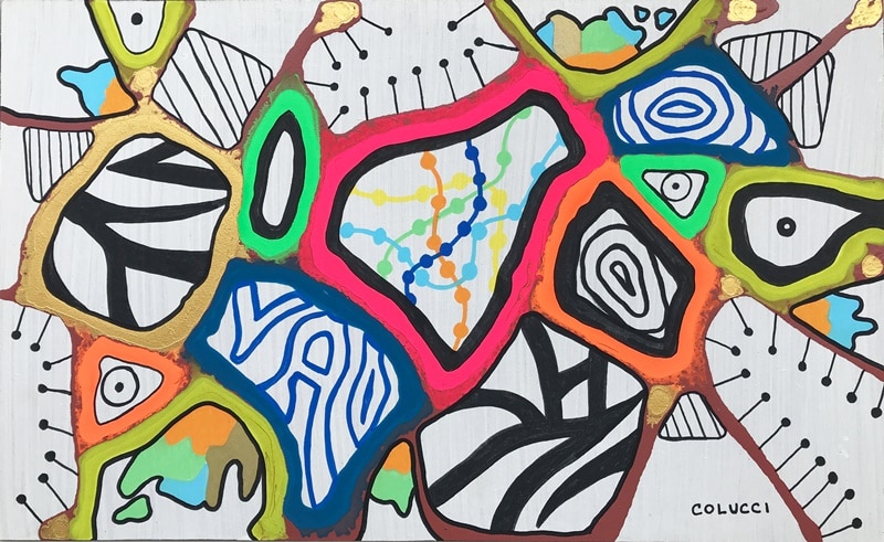 Colucci dipinge fin da tenera età e dopo aver completato gli studi a Milano al “CPM Music Institute” inizia un cammino nello sviluppo di un suo linguaggio artistico unico.
