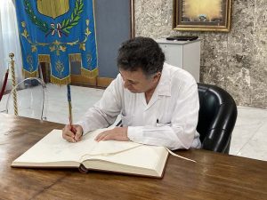 Prima di congedarsi, l’ambasciatore, che ha ricordato anche i 50 anni della finale dell’Azteca del 1970, tra Italia e Brasile e che vide soccombere la formazione italiana, ha firmato il libro d’onore del Comune dove di suo pugno ha vergato una dedica augurando al Sindaco Franz Caruso e ai cittadini di Cosenza i migliori successi, auspicando che la visita di oggi sia l’inizio di un rapporto più intenso ed anche più frequente”.