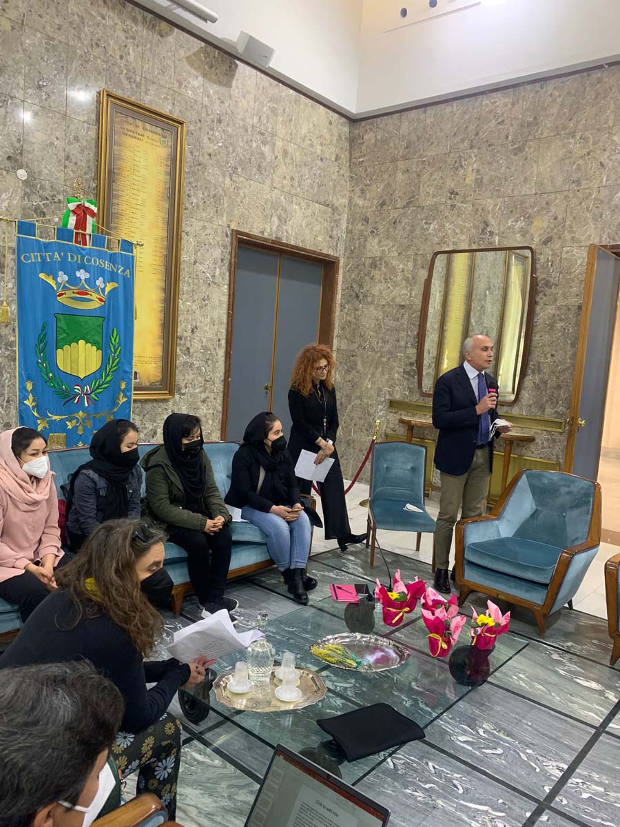 Aprendo la giornata, il Sindaco Franz Caruso ha rivolto una prima riflessione ai giovani studenti seduti nel salone di rappresentanza di Palazzo dei Bruzi. “Oggi è significativa la vostra presenza – ha detto il Sindaco – perché rappresentate il futuro di questa città che deve essere un futuro solidale che elimina le discriminazioni e le differenze. E quale messaggio migliore di quello che noi oggi vogliamo lanciare accogliendo nella casa comunale queste quattro ragazze afghane che sono dovute scappare dai loro territori per sottrarsi alla violenza della guerra e dei talebani?