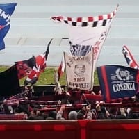1′ Squadre in campo, dopo i convenevoli di rito a dare inizio alle ostilitá é la formazione ospite con un completo bianco a strisce biancazzurre, risponde il Cosenza con la classica divisa rossoblù
