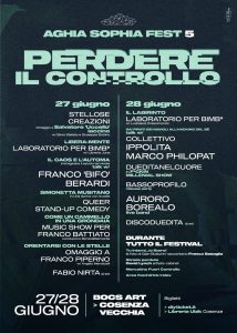 Aggiungono dall’organizzazione: «E, ancora, la rivoluzione della controcultura in salsa Philopat e l’hacking del sé illustrato da Ippolita, infilando Dueditanelcuore della generazione Y e dei dischi che la rappresentano, per chiudere in bellezza con un party, solo apparentemente, Bassoprofilo e attendere, felici e sudat*, la comparsa dell’Auroro Borealo su Cosenza Vecchia. Sì, perché se perdiamo il controllo, insieme, tutto è possibile. Numi tutelari dell’edizione Franco Basaglia e David Lynch. Area food, drink & relax sempre aperta».