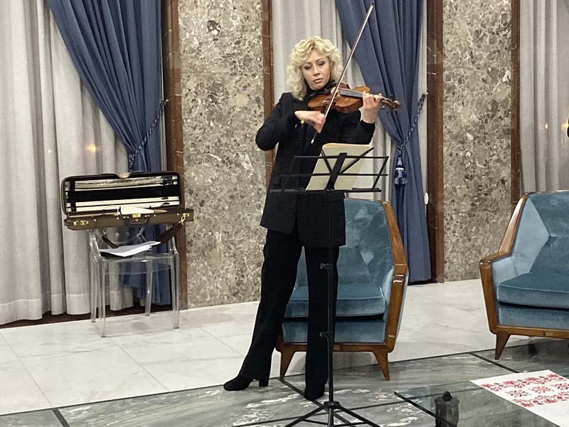 La serata era stata aperta dall’esecuzione al violino dell’Inno di Mameli e dell’inno nazionale ucraino. Momenti di grande commozione che hanno coinvolto tutta la platea e soprattutto il Sindaco Franz Caruso. Quindi il violino di Olga Mykhailiuk ha accompagnato le immagini del video con il quale sono stati ricordati i 365 giorni della guerra in Ucraina, eseguendo la “Melodia in La minore” del compositore ucraino Myroslav Skoryk.