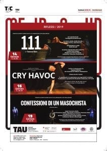 E lo fa ospitando due produzioni che si misurano con la contemporaneità di due testi internazionali, il cui debutto è avvenuto nel Festival Primavera dei teatri all’interno del PROGETTO EUROPE CONNECTION in collaborazione con Fabulamundi, che tornano in splendida forma nel luogo in cui hanno avuto la prima gestazione: 111 e Confessioni di un masochista, sono infatti entrambi progetti sviluppati da una residenza artistica all’interno degli spazi teatrali dell’Unical, che si confronteranno con la straordinaria esperienza di Kairos Italy Theater e il suo Cry Havoc.