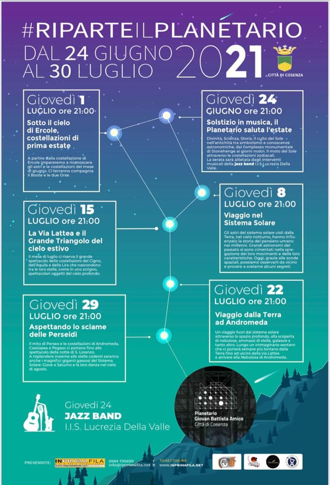 Ripartono le attività al planetario di Cosenza con il primo appuntamento del 24 giugno con “il solstizio in musica: il planetario saluta l’Estate”.