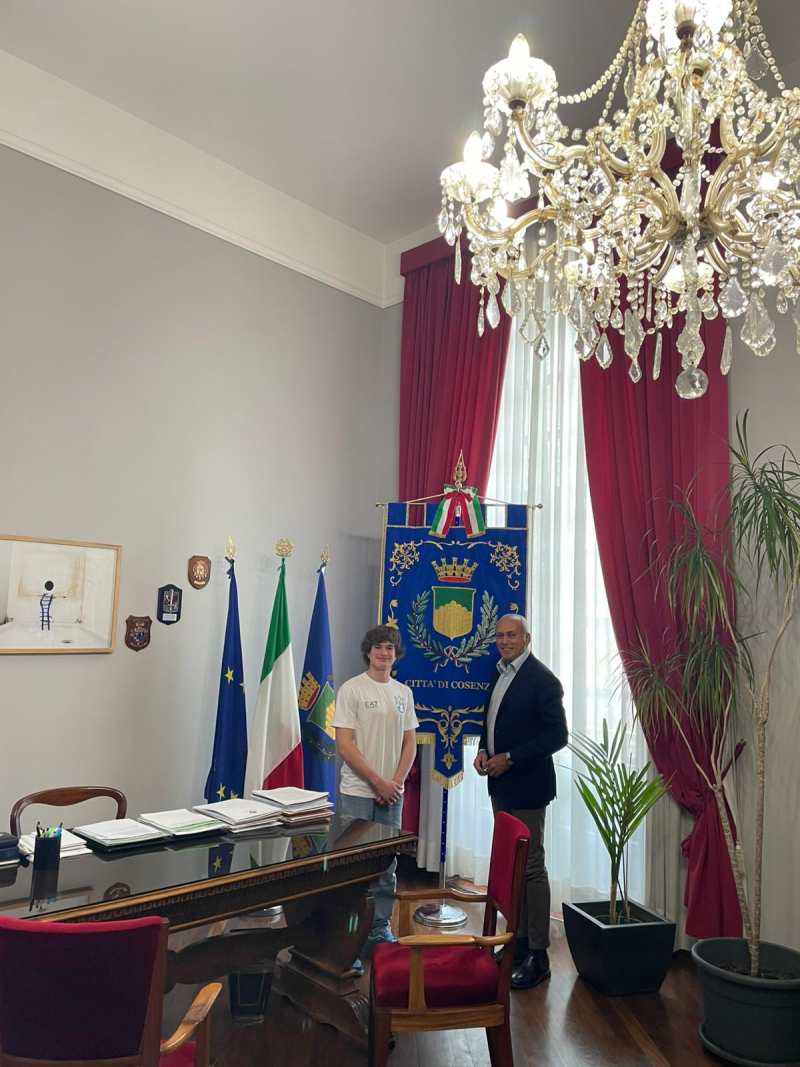 “Cosenza sogna il podio con Lorenzo Gubbini – ha dichiarato il sindaco Franz Caruso –. Lo sosterrà con entusiasmo, accompagnandolo verso l’auspicato trionfo. Lorenzo, che vanta già un palmarès di tutto rispetto, a soli 15 anni è soprattutto un campione di vita, per la sua perseveranza, la sua determinazione e la capacità di affrontare ogni ostacolo senza mai arrendersi. È stato un vero piacere riceverlo nella casa comunale e ascoltare i suoi sogni e le sue ambizioni, che sono certo saprà realizzare.”