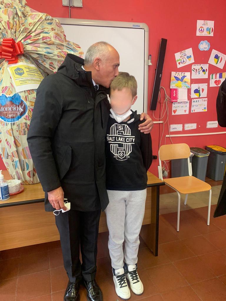 Il Sindaco Franz Caruso si è recato al plesso scolastico di Via Milelli, accompagnato dal consigliere comunale Caterina Savastano, delegata del Sindaco alle politiche dell’infanzia e ai diritti dei bambini, e dal Presidente territoriale di Cosenza e provincia dell’associazione UNAI, Francesco Tavernise, per consegnare ai bambini provenienti dalla Ucraina un gigantesco uovo di Pasqua offerto dall’Unione Nazionale di Amministratori di Immobili.