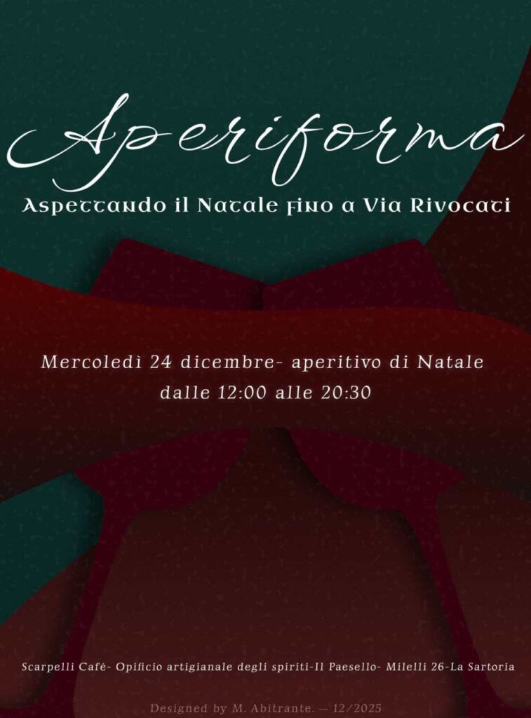 Domani 24 dicembre dalle 12 i locali di piazza Riforma e via Rivocati fino a viale Misasi celebreranno l’aperiforma, una festa per aspettare il Natale. Si potranno degustare i prodotti tipici, assaggiare un bicchiere di vino e rendere più bella la vigilia.