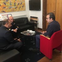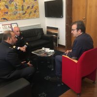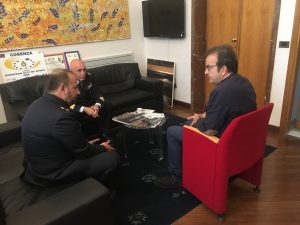 Il Tenente colonnello Tabaroni, nel giro istituzionale che sta compiendo in questi giorni, ha voluto incontrare il Sindaco Mario Occhiuto. Un colloquio molto cordiale, quello svoltosi nella stanza del primo cittadino, che ha dato il benvenuto al nuovo comandante ricevendo dall’ospite i complimenti per la vivacità e la qualità della vita che Cosenza esprime. “Ho avuto modo di apprezzare la città di Cosenza e i suoi monumenti -ha sottolineato il Comandante Tabaroni. Ho visitato il Castello, la Cattedrale, il Museo all’aperto di Corso Mazzini (il Mab)- ha aggiunto – e posso dire di trovarmi già a mio agio”. Originario di Conversano, in provincia di Bari, il Tenente colonnello Tabaroni ha assunto il comando del Distaccamento Aeronautico di Montescuro dopo aver trascorso gli ultimi 6 anni e mezzo a Loreto, nelle Marche.