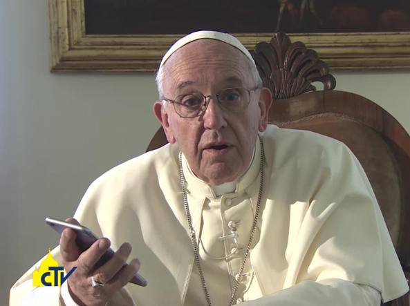 Papa Francesco con lo smartphone in mano