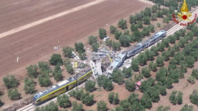 L’incidente ferroviario avvenuto tra Corato e Andria mette a nudo due Italia: una ad alta velocità e pluribinariata, l’altra in cui si muovono lungo un unico binario delle vere e proprie diligenze che quotidianamente rischiano di collidere fra loro… non avviene grazie a un assurdo gioco di comunicazioni e permessi in base al quale un treno aspetta che l’altro treno viaggiante in direzione contraria arrivi in un impianto ferroviario per poter far partire l’altro. Quando questo gioco di alt, di semafori verdi che diventano gialli dopo che il treno è partito, di casellanti che non esistono più e che in molte occasioni hanno sventato delle vere e proprie stragi, si inceppa succede quello che è successo. Morti che sarebbero potuti essere molti di più se si pensa che le scuole sono chiuse e quei treni sono mezzi con cui gli studenti si spostano.