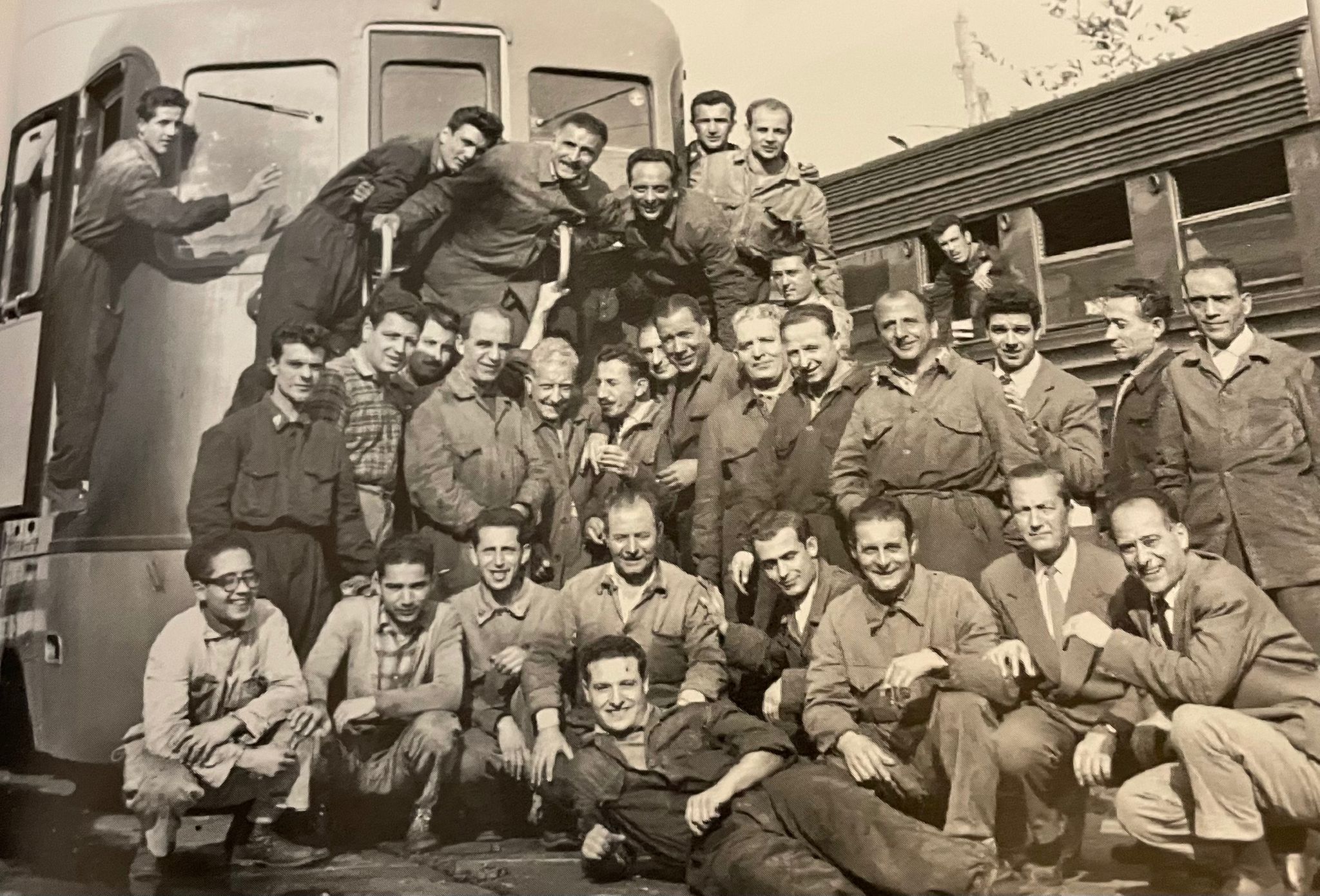 gruppo di ferrovieri sulla locomotiva