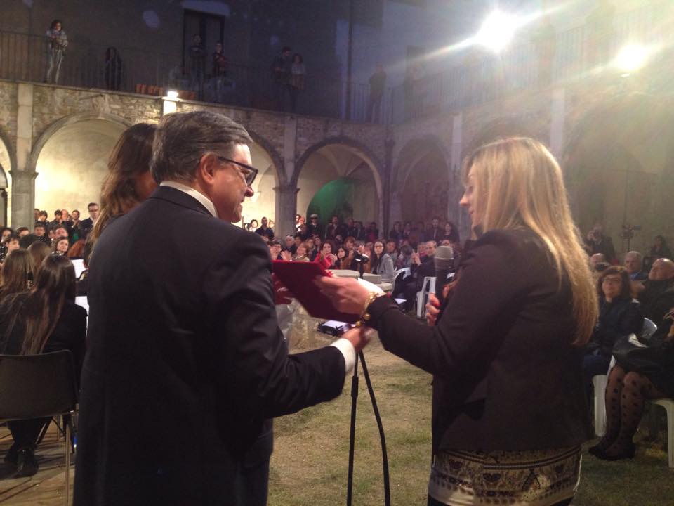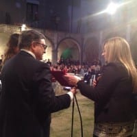 Stretta di mano tra il sindaco di Montalto Uffugo e l’assessore di Oppido Mamertina, con un reciproco scambio di doni. Montalto regala ad Oppido Mamertina, alcune pubblicazione sulla città di Leoncavallo, ed Eleonora Bellantonio, assessore di Oppido Mamertina, regala a Montalto Uffugo, nella persona del sindaco Avv. Caracciolo, una targa e la famosa “Torta Mamertina”, fatta con materie prime della loro terra.