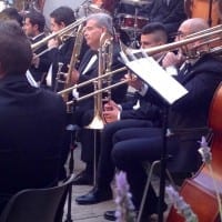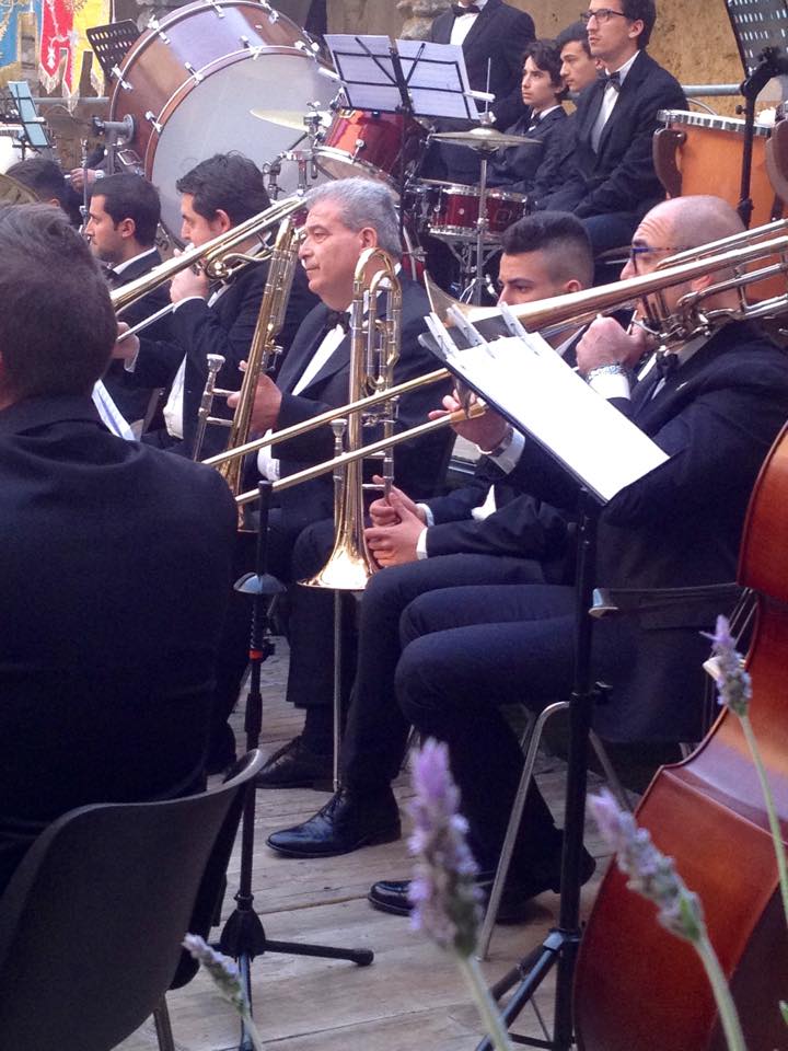 L’orchestra – formata da fiati, percussioni e arpa – ha eseguito brani originali per banda, un omaggio a Morricone, il “nessun dorma”, celebre romanza per tenore tratto dalla Turandot, African Simphony, e sul finale l’inno di Ruggero Leoncavallo.