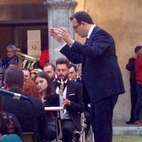 Ma un caloroso abbraccio è avvenuto tra i due direttori delle associazioni musicali gemellate, il Maestro Franco Giordano, ed il Maestro Giuseppe Scicchitano.