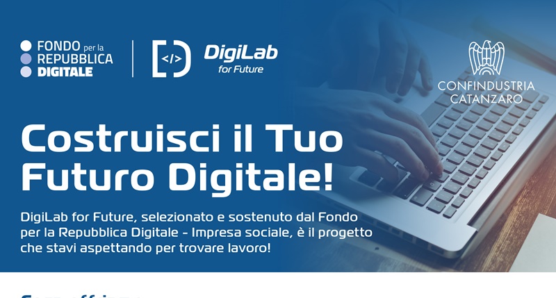 È stato prorogato al 20 luglio prossimo il termine per la presentazione delle domande di partecipazione a DigiLab for Future, il progetto nato dalla sinergia tra Confindustria Catanzaro, Universitas Mercatorum, Aulab Hackademy e beOn Foundation, in un’ottica di upskilling e reskilling delle competenze digitali.
