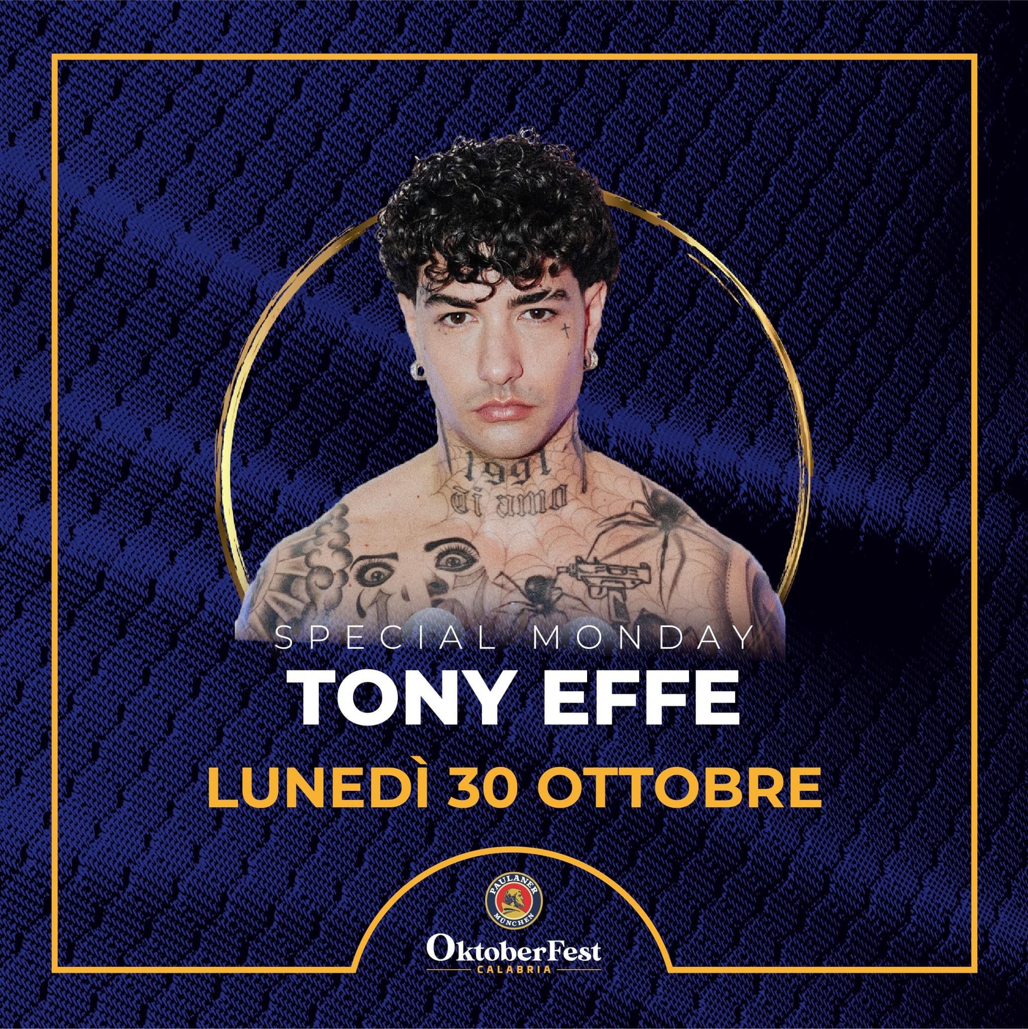 Una kermesse in grado di unire la cultura bavarese e quella italiana che tanto sta piacendo anche alle famiglie e ai giovani. È proprio a questi ultimi che si rivolge anche il nuovo format dello Special Monday con live, dj set e Guest star, che lunedì 30 ottobre vedrà anche l’arrivo di Tony Effe, artista che in coppia con Emma Marrone hanno dato vita al tormentone estivo 2023 “Taxi sulla Luna”.