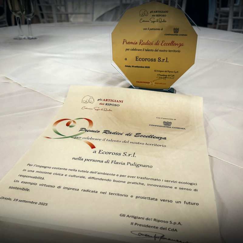 Ecoross, azienda calabrese attiva da oltre trent’anni nel settore dell’igiene urbana e dei servizi ambientali, è stata premiata con il riconoscimento “Radici di Eccellenza”. La cerimonia si è svolta a Oriolo in occasione della prima edizione di un evento che vuole valorizzare le imprese capaci di incarnare il legame autentico con il territorio e, allo stesso tempo, la capacità di innovare guardando al futuro. L’evento, promosso da “Gli Artigiani del Riposo” con il patrocinio di Confindustria Cosenza, ha rappresentato non soltanto un momento celebrativo, ma anche un’occasione di riflessione sulla forza del tessuto produttivo calabrese. La scelta di assegnare il riconoscimento a Ecoross sottolinea il ruolo che l’azienda ricopre in un settore strategico e delicato come quello della gestione dei rifiuti, dove efficienza, innovazione e responsabilità sociale devono camminare insieme. A ritirare il premio è stata Flavia Pulignano, responsabile marketing e comunicazione, in rappresentanza dell’amministratore unico Walter Pulignano, impossibilitato a presenziare. Nel suo intervento, Pulignano ha espresso parole che hanno colpito per la loro concretezza: «Per crescere in Calabria non bastano competenza e professionalità, servono coraggio, resilienza e testardaggine. Questo premio ci onora e lo dedichiamo ai nostri collaboratori e a tutte le comunità con cui ogni giorno costruiamo un percorso di fiducia e sostenibilità».