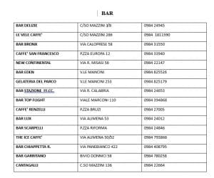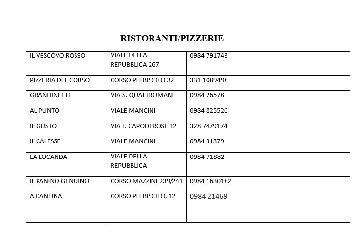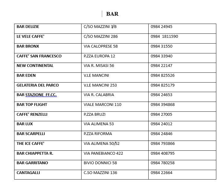 L’Assessorato alle attività economiche e produttive guidato da Loredana Pastore comunica l’elenco dei locali cittadini (bar, ristoranti e pizzerie) che sono aperti nel mese di agosto.