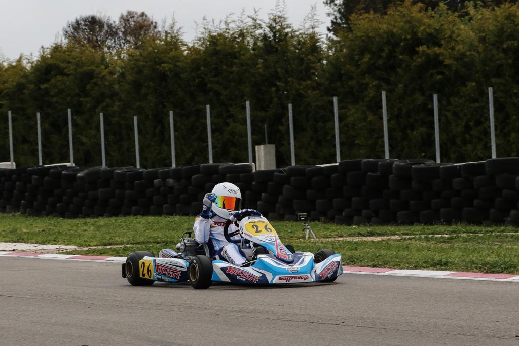Questo importante traguardo è arrivato con una grande prova di resistenza e di qualità sbaragliando il lotto degli agguerriti concorrenti della categoria X30 junior, registrando al termine addirittura il miglior tempo in gara. Ermanno è supportato dal team Goffredo Di Franco e da suo figlio Gianni che gli mettono a disposizione un telaio della top kart motorizzato Iame .