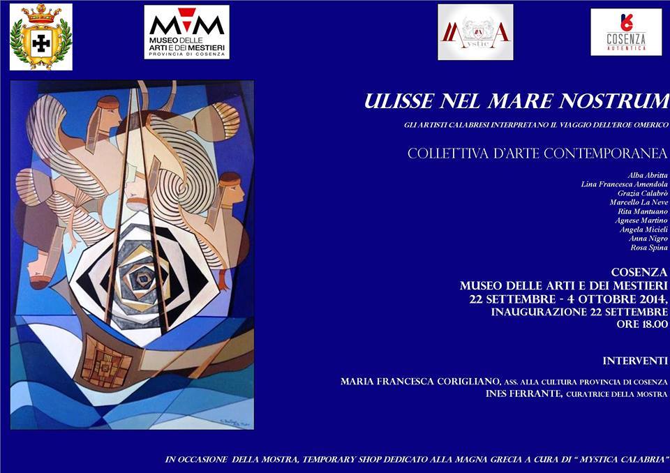 Dal 22 settembre al 4 ottobre andrà in scena l’esposizione Ulisse nel Mare Nostrum al MAM (Museo delle Arti e dei Mestieri) di Cosenza, ad opera della dottoressa Ines Ferrante e patrocinata dalla Provincia di Cosenza