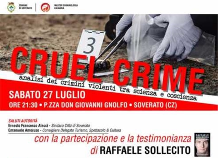 Soverato, la ridente cittadina in provincia di Catanzaro, si tinge di giallo. Tra pochi giorni la famosa località balneare della Costa degli Aranci si trasformerà nella location ideale di un evento a dir poco noir. Il 27 luglio, esattamente tra tre giorni, a partire dalle ore 21.30, in piazza Don Gnolfo, la criminologia farà discutere di sé. I riflettori dell’estate crime verranno infatti puntati sui crimini violenti, sulla giustizia, e sugli errori giudiziari.