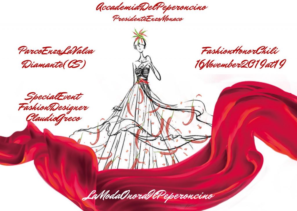 A sigillare l’unione tra il mondo della moda e quello del gusto sarà l’abito disegnato e realizzato da Claudio Greco in pizzo francese degli anni ’60 e impreziosito da un elemento che verrà svelato nel corso della serata. Il presidente di accademia Enzo Monaco assegnerà a Greco il titolo di “Ambasciatore mondiale dell’Accademia del Peperoncino”.