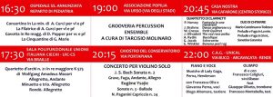Mentre alle 20.44 Il duo di chitarre, formato da Mariacristina Costanzo e Stefano De Marco, suonerà presso il bellissimo Chiostro dell’Istituto “Casa Nostra e a seguire la performance di un Quartetto di clarinettiste, formato da Angela Rita Sproviero, Rossella Flotta, Alessandra Coschignano e Annagrazia Ciriegio.