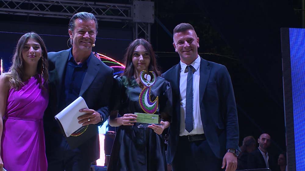 Seconda posizione per la giovanissima sandemetrese Gaia Bua, che con il brano “Moti dallanyshvet” si è aggiudicata anche l’ambito riconoscimento del Premio Pino Cacozza, (miglior testo del festival, ndr), ritirato dalle mani dei professori Michelangelo La Luna e Nikola Bellucci, componenti della giuria tecnica.