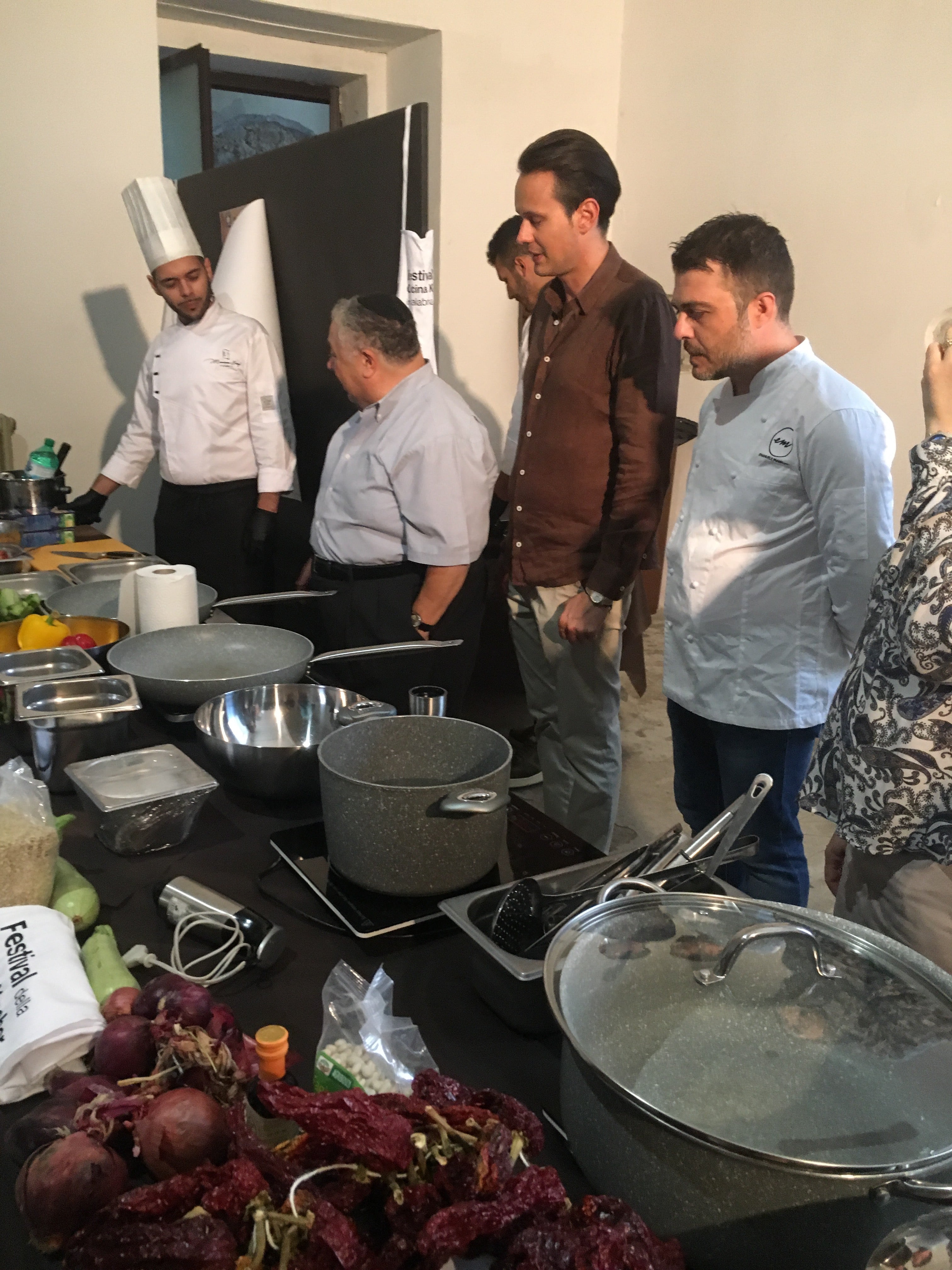 Prima del suo intervento, il Rabbino Maggiore Umberto Piperno, accompagnato dalla signora Amalia Kramer, ha passato in rassegna le materie prime e tutti gli utensili da cucina impiegati nella preparazione dei piatti della tradizione ebraica, a cura degli chef della “Maccaroni Chef Academy” di Corrado Rossi, coadiuvati dai ragazzi dell’Associazione “Gli altri siamo noi”. Un controllo di qualità ritenuto fondamentale, considerata la ritualità seguita nella realizzazione dei piatti, sotto il profilo squisitamente alimentare, finalizzato ad esaltare i valori nutrizionali e i benefici di un’alimentazione c.d. “pura” che nella due giorni del Festival è stata messa a confronto con la dieta mediterranea. Obiettivo del Festival era, infatti, quello di aprire un focus sulle tradizioni ebraiche in materia gastronomica e su principi, tecniche e modalità di esecuzione dei piatti della cucina Kosher, senza disdegnare accostamenti e similitudini con la cucina calabrese e locale, nella quale, pur non abbondando regole religiose di stretta osservanza come quella kosher, sono comunque presenti, soprattutto nella tavola imbandita delle festività, rimandi al simbolismo.