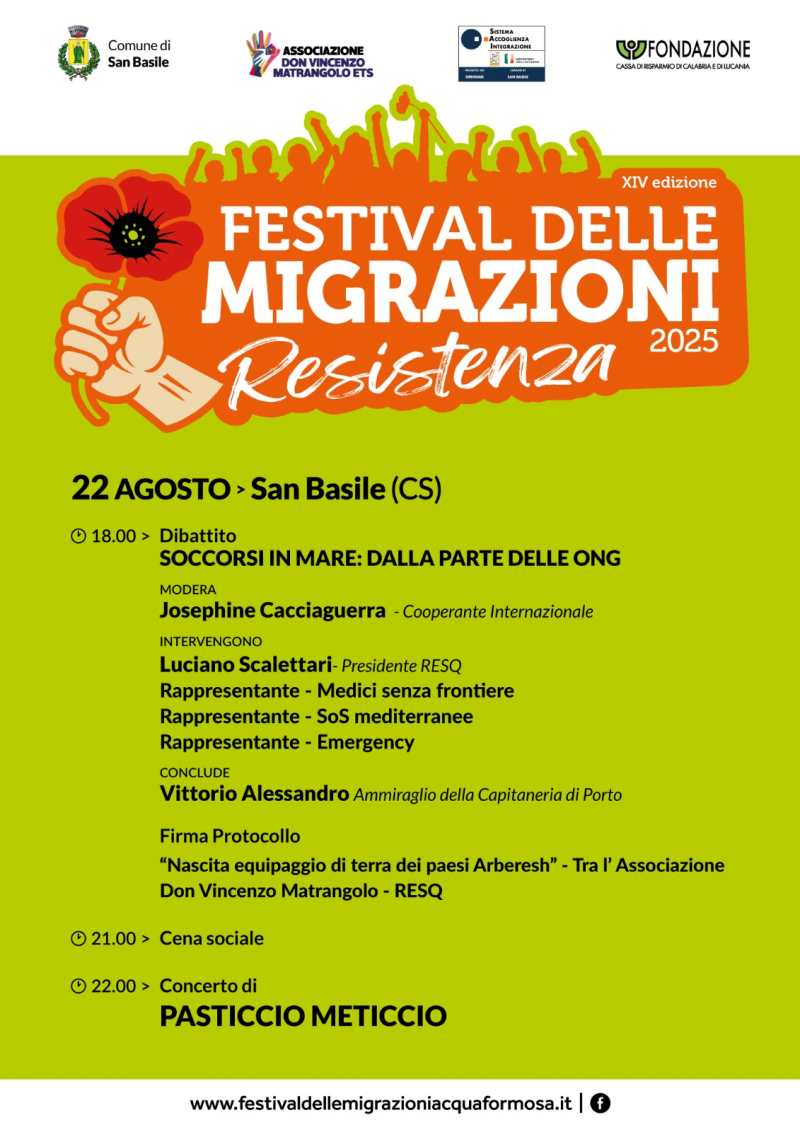 Parte stasera da San Basile la XIV edizione del Festival delle Migrazioni, l’evento itinerante nato per iniziativa dell’Associazione Don Vincenzo Matrangolo ETS, che rappresenta un progetto culturale diffuso che unisce musica, formazione, cinema e confronto sociale. Al centro c’è l’esperienza dell’accoglienza come modello di crescita reciproca, dialogo e riconoscimento tra migranti e comunità ospitanti e quest’anno dedica il tema di fondo alla Resistenza.