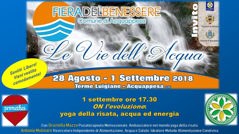 – ore 17.30, ON Yoga della risata, acqua, energia, laboratorio teorico pratico a cura di “Promethes” (Graziella Mazza e Antonio Molinaro) , Palazzo Congressi Terme Luigiane