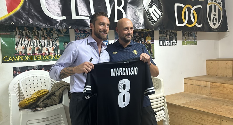 Claudio Marchisio e’ arrivato in città alla vigilia di una cena di beneficenza che si svolgerà domani sera al Fellini Restaurant. Il club e’ piccolo, ma e’ pieno di sciarpe, cartoline, fotografie di partite viste in tutti gli stadi del mondo. E Marchisio fa i complimenti a tutti:”siete stati ovunque”. Paolo Stranges, il presidente del Club finalmente e’ rilassato: “ Claudio e’ qui con noi, ora dobbiamo pensare soltanto alla serata di domani. Sarà una serata importante perché Claudio non e’ solo calcio…”.