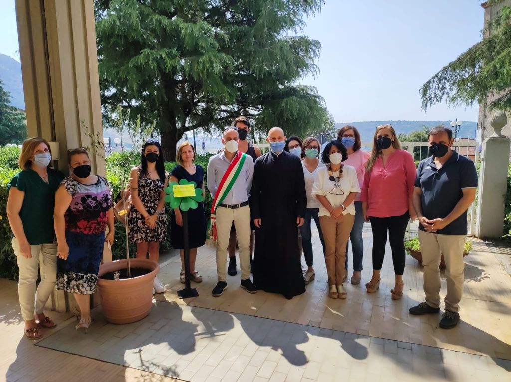 Presenti alla cerimonia, il vice sindaco, Angelo Prioli, il presidente del Consiglio comunale, Francesco Grisolia, la consigliera delegata alle Politiche culturali, Caterina Adduci, I dipendenti dell’ente e il parroco, papàs Gabriel Sebastian Otvos, che ha proceduto alla benedizione della pianta.